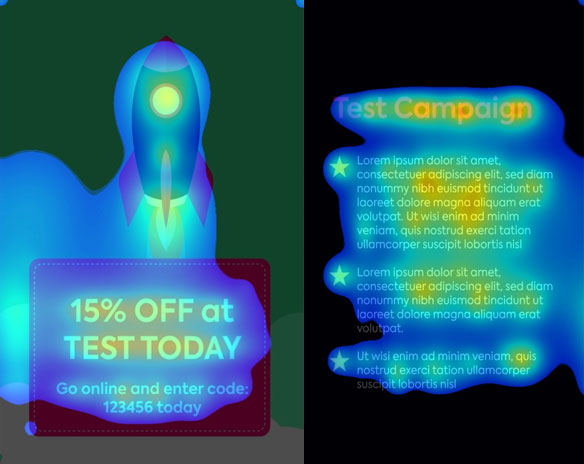 This service is available to all clients free of charge, as an added value. The tool utilizes AI to evaluate the creative and identifies where the eye will naturally look first, second, etc. This helps our clients better understand how their ad will be perceived, the journey it will take the average consumer on, and an opportunity to re-work the creative to ensure every opportunity is maximized. This tool can be particularly helpful when deciding on new or test creative.